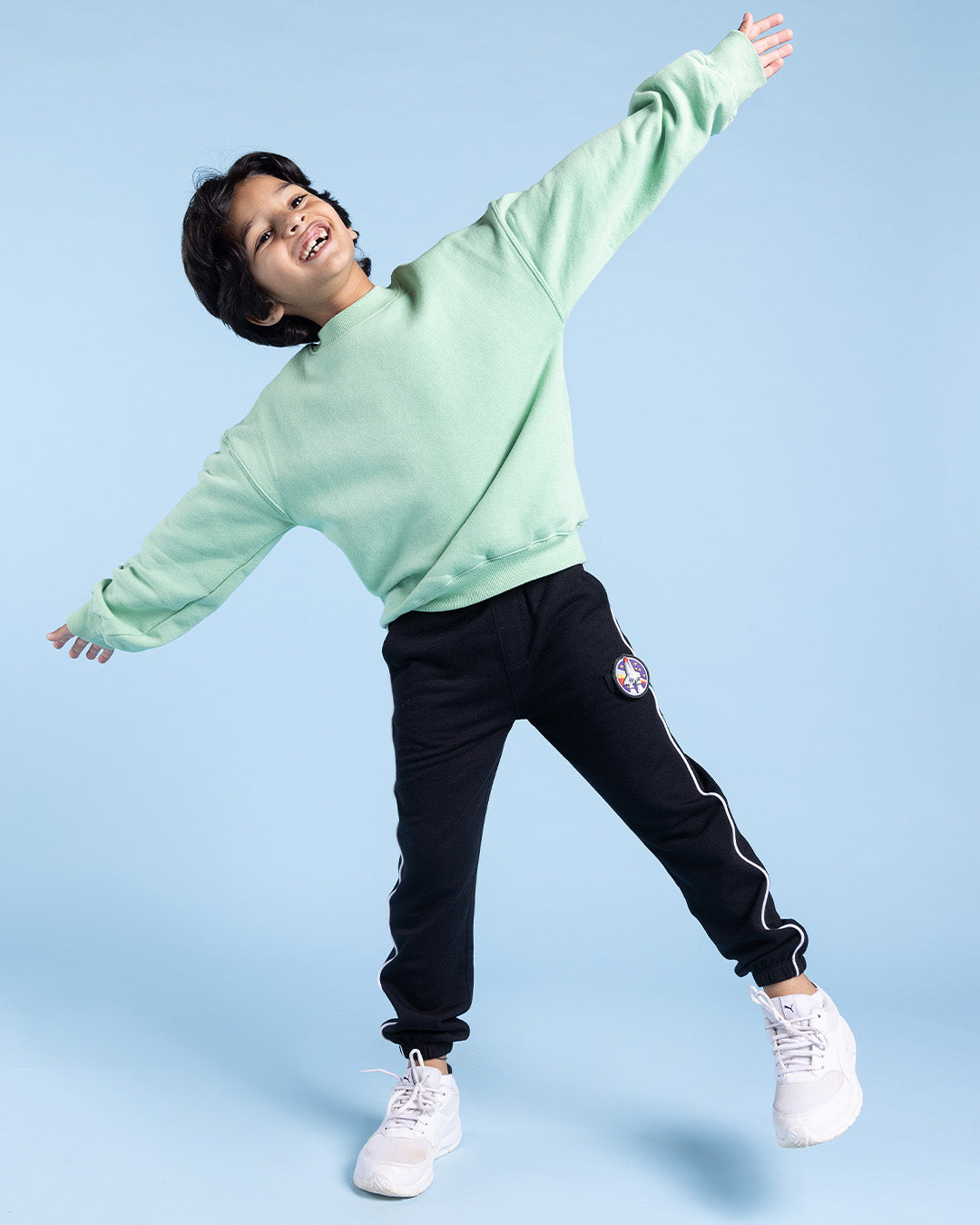 Crafted for the chilly winters of India, these fleece-lined joggers bring together warmth, comfort, and elevated style. A sleek piping detail runs along the silhouette, giving a modern, refined edge that sets them apart from everyday basics. Designed for all-day wear for indoors or out, they come in versatile unisex colours, kids will love and moms will appreciate for the simple care that’s needed.